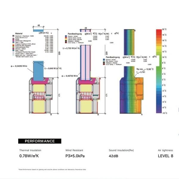 Equipped with imported TECHNOFORM PA66GF25 insulation strips as standard, using ultra-wide 64mm insulation strips, and the insulation effect is 2-3 times higher than